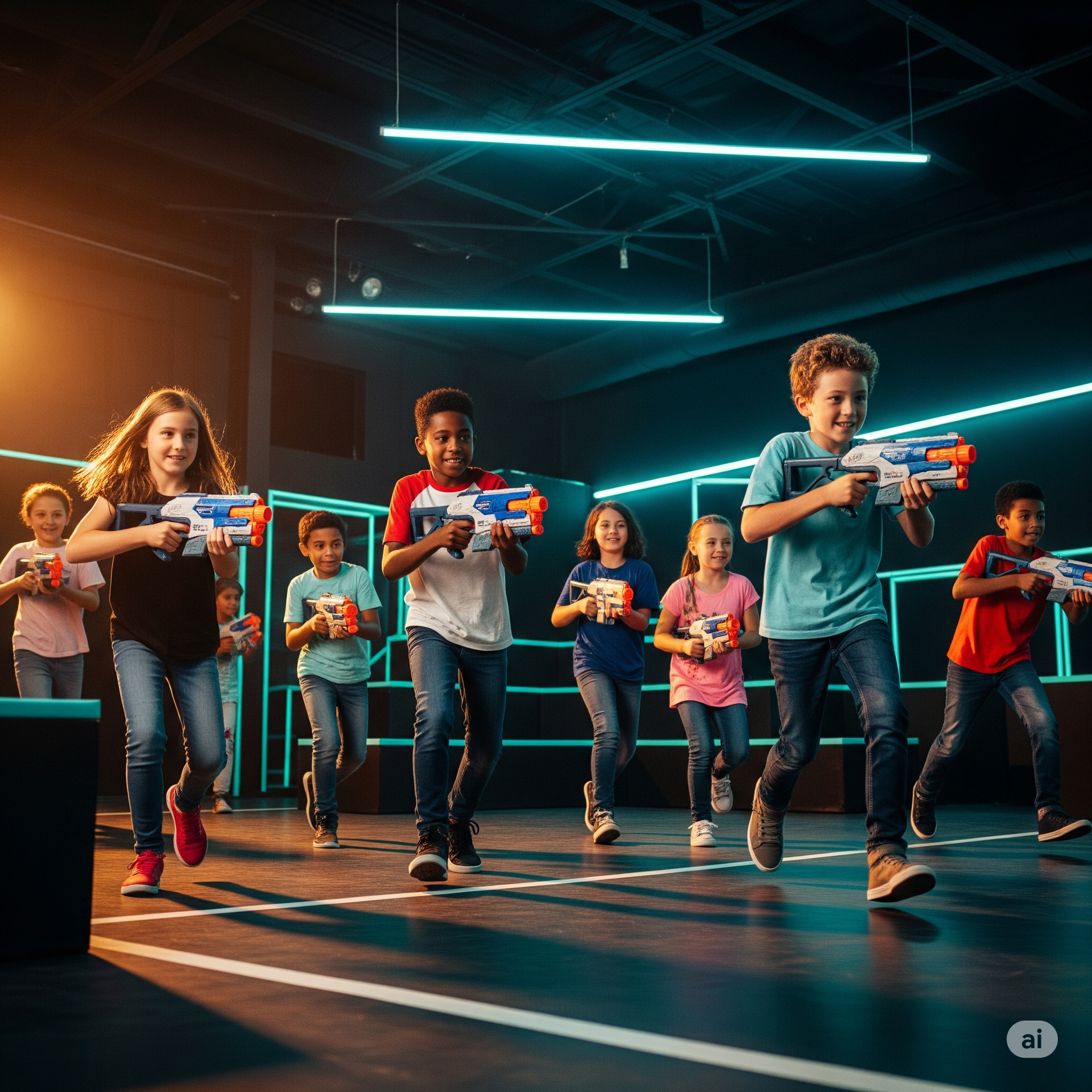 Ages 5 and up — from energetic kids to teens, young adults, and even full-on grownups. Whether it’s a spontaneous playdate, rained out baseball practice, homeschool field trip, post-school hang, or unique date night, RIVALS is your go-to for active Nerf blaster fun.